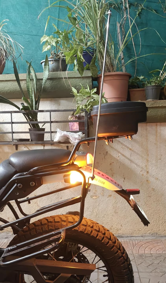 Durable Flag pole attachment with sleek, metallic design features a sturdy mounting clamp that securely fastens to your saddle stay frame. Crafted from robust SS rod with 22 inch long flag pole which extends vertically to ensure maximum visibility while riding. The clever L-shaped design includes an adjustable clamp mechanism that allows for quick installation and removal. Perfect for motorcycling enthusiasts who want to display flags, pennants, or safety markers while riding. The pole's length provides excellent flag visibility without compromising bike handling or rider safety. Ideal for group rides, events, or simply adding a personal touch to your bike. The weather-resistant coating ensures lasting performance through various riding conditions. Please note that flag is not included with the pole. Installation is straightforward and requires no special tools.